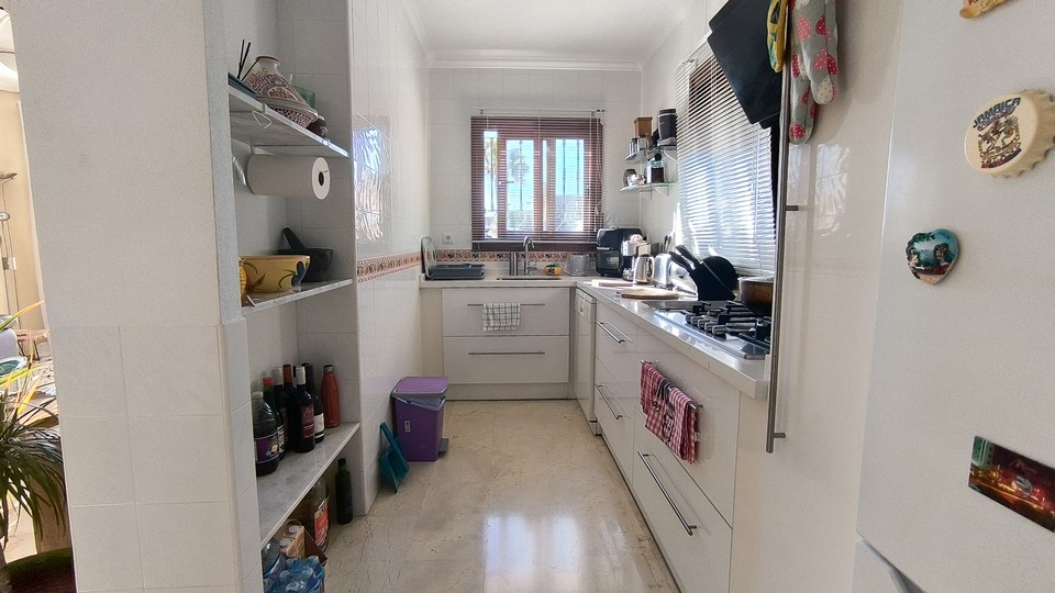 A side terrace catches the morning sun, perfect for breakfast outdoors. The villa’s interior has been thoughtfully modified to create a larger and more open living area. The bright lounge offers plenty of space to relax and entertain. The kitchen is separate and well equipped, with access to the garage.