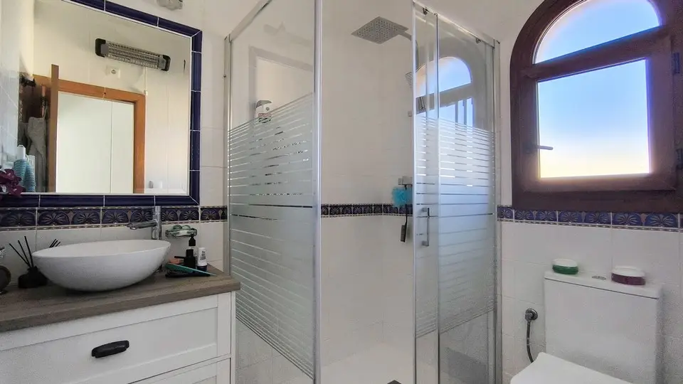 The villa is sold partly furnished and includes air conditioning and gas central heating throughout. Bars and restaurants are just a five-minute walk away, while Ciudad Quesada is a seven-minute drive. The blue-flag beaches of Guardamar del Segura are only twenty minutes by car. Alicante Airport and Torrevieja’s health centres are both within easy reach.