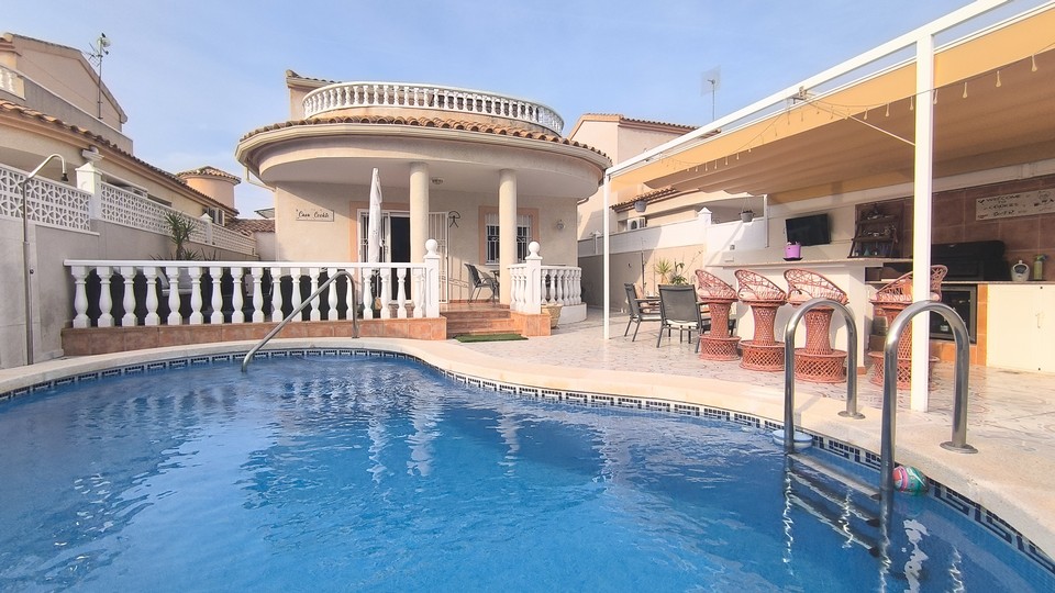 This south facing detached villa is located in the popular area of Atalaya Park, Benijofar. Importantly, it sits just a 10-minute walk from Benijófar town centre. Equally, Ciudad Quesada’s main street is only 10 minutes away on foot.