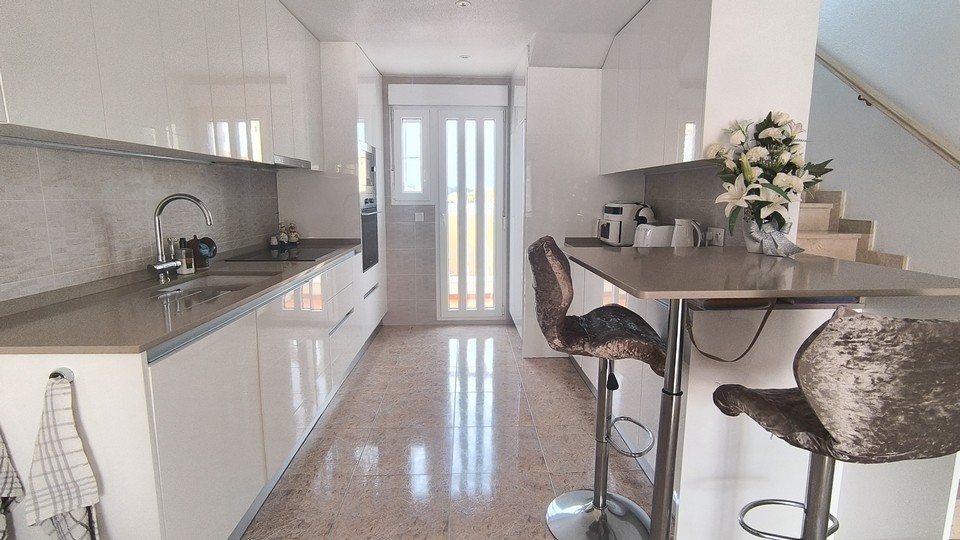 Upstairs, the villa reveals an impressive master bedroom suite. This level includes huge built-in wardrobes and a modern en-suite shower room. Additionally, patio doors open onto a large private terrace, ideal for sunbathing or evening relaxation.