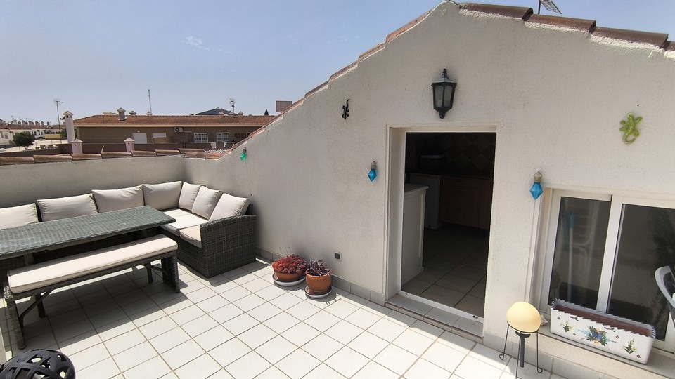 This stunning top floor apartment is located in the sought-after area of Doña Pepa, Ciudad Quesada.  Offering a perfect combination of comfort, space and outdoor living, it is part of a well-maintained community with a large communal pool. This makes it ideal for both permanent living or holiday getaways.
