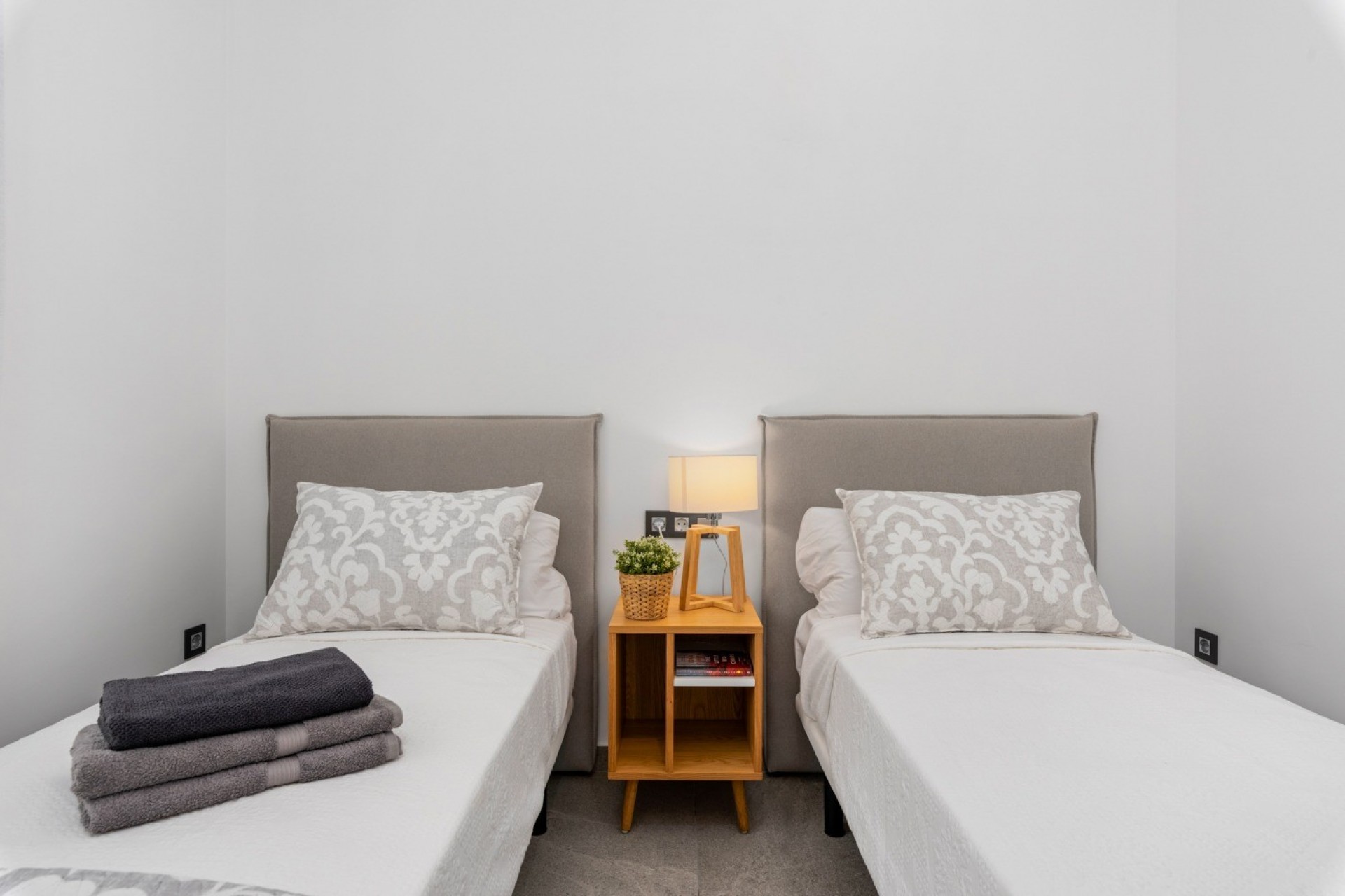 An exceptional contemporary style detached villa built over three floors and just 3 years old is immaculately presented.  You enter the west facing garden onto a large tiled terrace surrounding the private heated pool with Roman steps, with ample space for sun loungers plus off road parking. It is a private space with a dining/seating area complete with sun awnings and patio doors leading into the lounge.  On entering the villa itself you are met with a very spacious and open plan living area with high ceilings and lots of natural sunlight. There is a lounge with patio doors out to the swimming pool, a dining area and fully fitted kitchen. Also on this floor there is a guest cloakroom, and the master bedroom with an en-suite shower and dressing room area with large fitted wardrobes. Stairs lead to the first floor and 2 further double bedrooms, each with fitted wardrobes and a family bathroom. From the landing you can also access a large two level terrace with water and electric supply, perfect for a jacuzzi maybe! A further staircase leads to the fantastic solarium with lovely views of the surrounding area, plenty of dining and relaxing space and a superb summer kitchen with an electric shutter to protect from the sun/rain, with water and electric supply, a sink, fridge, microwave, cupboards, drawers and work surface. This simply stunning property is being sold fully furnished to a high standard and is an absolute gem not to be missed!