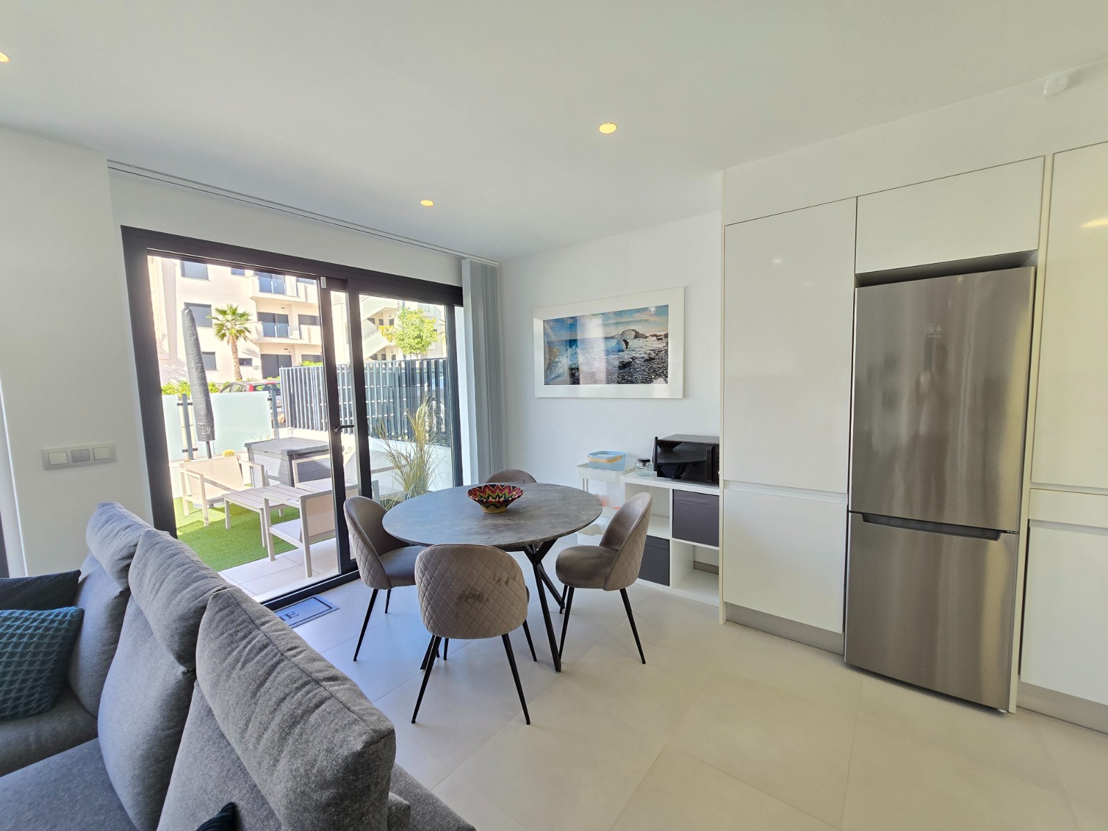 The villa has three spacious bedrooms and two fully equipped bathrooms, ideal for families or guests. The bright and open living room offers plenty of space for relaxation and socialising, with direct access to the garden. The modern kitchen is cleverly laid out and equipped with high-quality appliances.